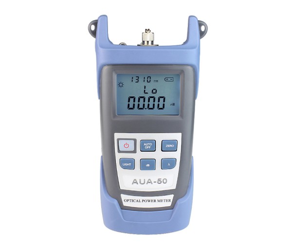 เครื่องวัดค่าสัญญาณแสง (Optical Power Meter) รุ่น AUA-50 วัดช่วงค่าแสงระหว่าง -50~+ 26dBm เชื่อมต่อหัวคอนเน็คเตอร์ ทั้ง FC และ SC (ถอดเปลี่ยนได้) วัดช่วงความยาวคลื่นแสง 850,980,1300,1310.1490.1550