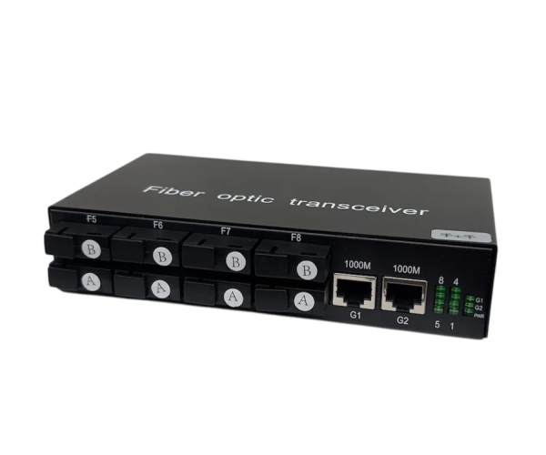 อุปกรณ์แปลงสัญญาณ Gigabit Ethernet ผ่านใยแก้วนำแสงแบบ Single-mode รองรับการเชื่อมต่อได้สูงสุด 8 พอร์ตไฟเบอร์ และ 2 พอร์ต LAN ความเร็วสูง 10/100/1000 Mbps เหมาะสำหรับระบบกล้องวงจรปิด (CCTV), ระบบ LAN ระยะไกล, หรืองานเครือข่ายอุตสาหกรรมที่ต้องการความเสถียรสูง