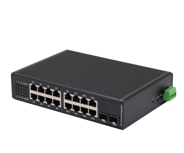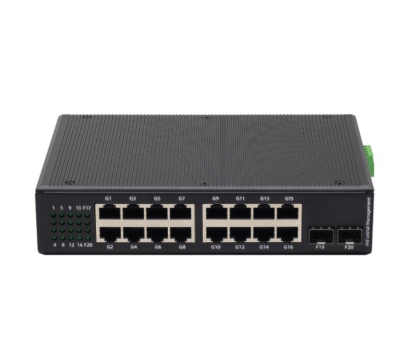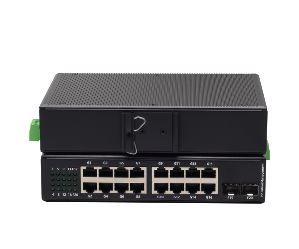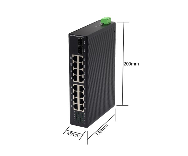 สวิตช์ PoE เกรดอุตสาหกรรมสำหรับงานเดินระบบที่ต้องการความเสถียร: 16 พอร์ต Gigabit (10/100/1000) พร้อม 2×SFP Uplink สำหรับเชื่อมต่อไฟเบอร์ออฟติก เหมาะกับ กล้อง IP (CCTV), Access Point และงานเครือข่ายในตู้คอนโทรล รองรับการติดตั้งแบบ DIN-Rail (DIN-35mm) โครงโลหะ IP40 และช่วงอุณหภูมิทำงาน -30~75°C