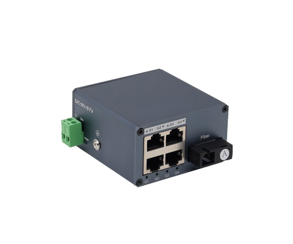 Mini Gigabit Industrial Fiber Converter 1SC 4LAN 20km A-Type