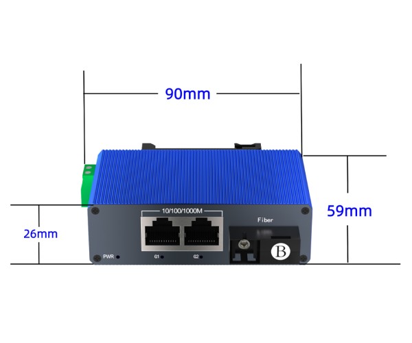 Mini Gigabit Industrial Media Converter | 1 Fiber (SC/WDM) + 2 LAN | 20km