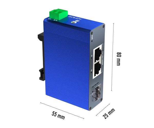 มีเดียคอนเวอร์เตอร์อุตสาหกรรมขนาด Mini สำหรับแปลงสัญญาณ Ethernet (RJ45) เป็นไฟเบอร์ออฟติกผ่านช่อง SFP รองรับงานที่ต้องการความเสถียรสูง เช่น โรงงาน, ตู้คอนโทรล, ระบบ CCTV และงานภาคสนาม