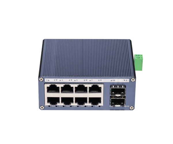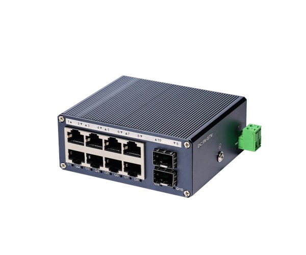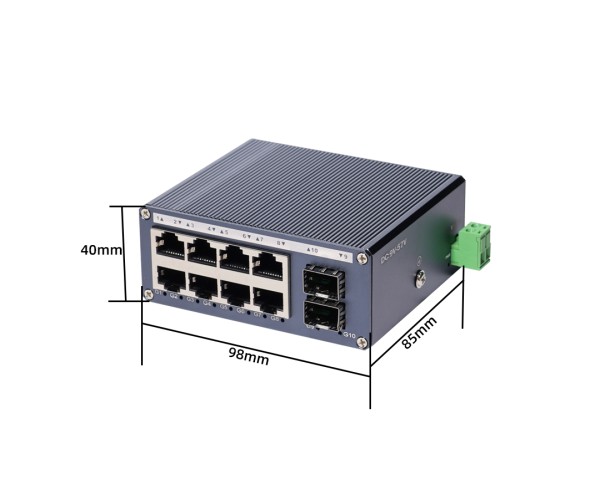 สวิตช์อุตสาหกรรมขนาดมินิ 8 พอร์ต LAN + 2 ช่อง SFP Uplink รองรับไฟ DC 9-57V ติดตั้งราง DIN