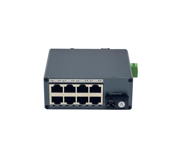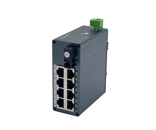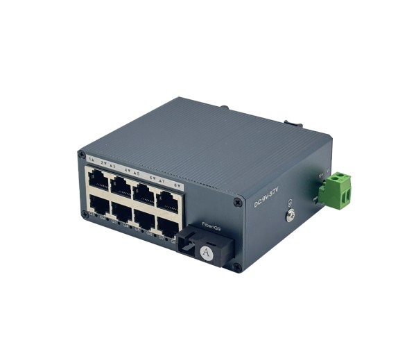อุปกรณ์แปลงสัญญาณเครือข่ายระดับอุตสาหกรรมแบบ ขนาดมินิ สำหรับเชื่อมต่อเครือข่ายผ่านไฟเบอร์ออฟติก รองรับ 8 พอร์ต LAN Gigabit และ พอร์ตไฟเบอร์ SC แบบ WDM A ส่งข้อมูลได้ไกลถึง 20 กิโลเมตร เหมาะกับงานตู้คอนโทรล, โรงงาน, โกดัง, ระบบ CCTV และงานภาคสนามที่ต้องการความเสถียรสูง