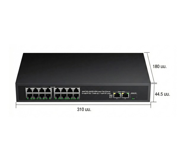 | พอร์ต PoE | 16 × 10/100 Mbps (RJ45) |